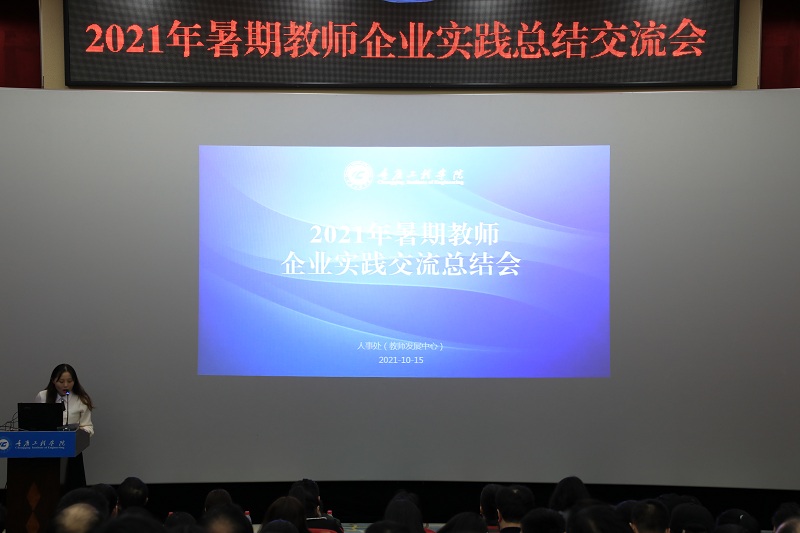 本网讯 (文/ 教师发展中心 张静 图/大学生记者团 李茜)10月15日下午,由教师发展中心组织的“2021年暑期教师企业实践交流总结会”在办公楼阶梯教室举行,教务处、校企合作办、科技处、二级学院领导及各学院专业教师代表共180多人参会。会议由教师发展中心副主任张晓颖主持。