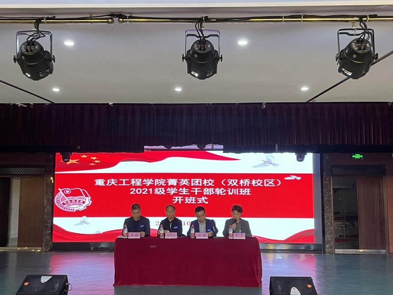 本网讯(文/图 通识学院 吕颖莉)为提升学生干部的思想政治素质和业务工作能力, 10月26日晚,重庆工程学院菁英团校2021级学生干部轮训班开班式在双桥校区报告厅举行。学校副校长、双桥校区管委会主任蒋国华,双桥校区党总支副书记、学生事务办公室主任孙建,学生事务办公室副主任王儒,校团委副书记陈军,全体2021级辅导员,双桥校区及各专业学院分团委学生会、学生班级主要学生干部及学生助理团队负责人等参加了开班式。