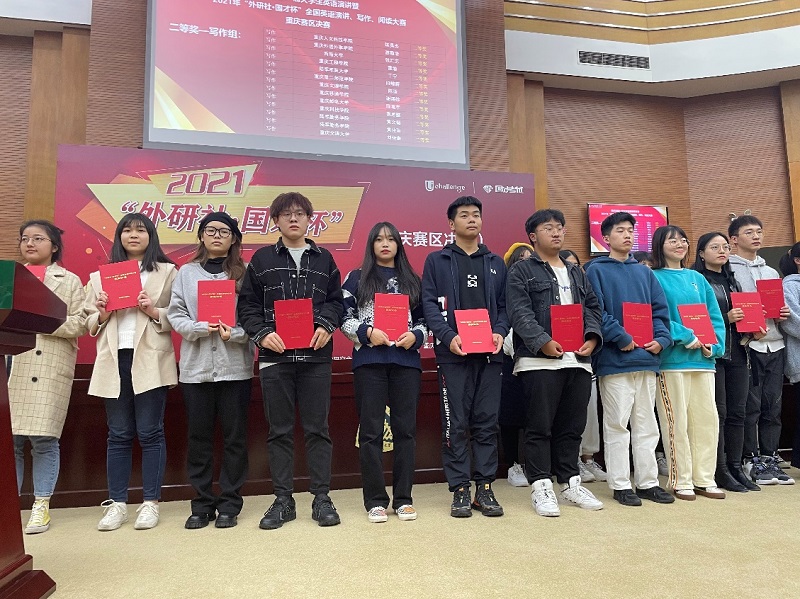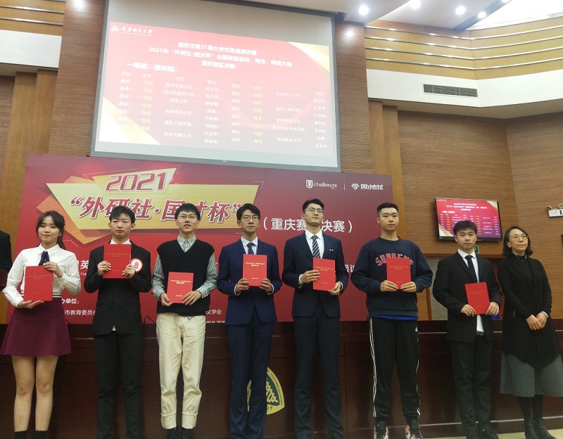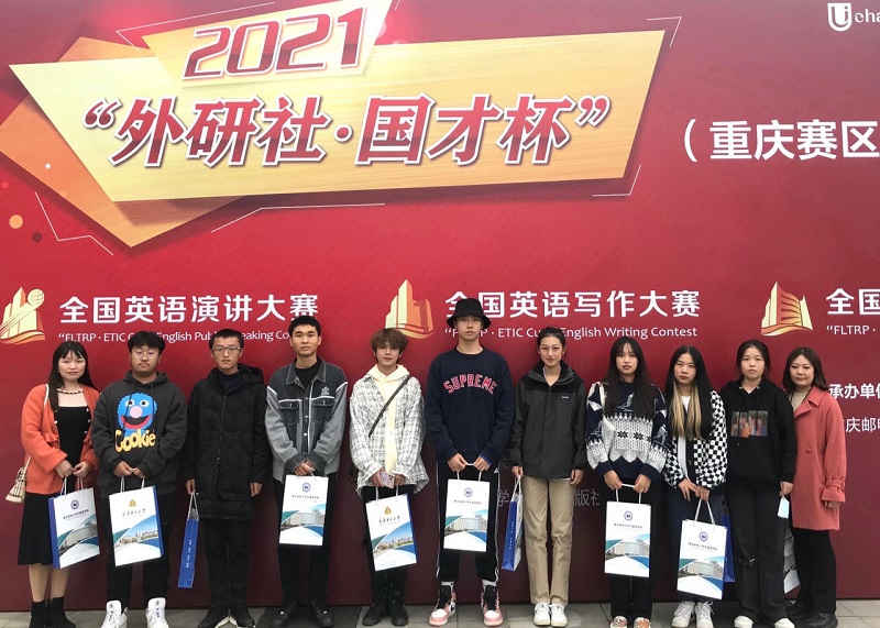 本网讯(文/图 通识学院 黄柳)10月23日,2021“外研社·国才杯”全国英语演讲、写作、阅读大赛(UChallenge)(“外研社·国才杯”重庆市大学生英语演讲大赛、英语写作大赛和英语阅读大赛)重庆赛区决赛在重庆邮电大学拉开帷幕。我校由通识学院外语教学部指导的9名学子组成了代表队,由黄柳老师、蹇佳老师带队参赛,与来自重庆大学、西南大学、四川外国语大学等全市多所本科院校的近300名选手展开同台竞技,并取得突破性成绩。