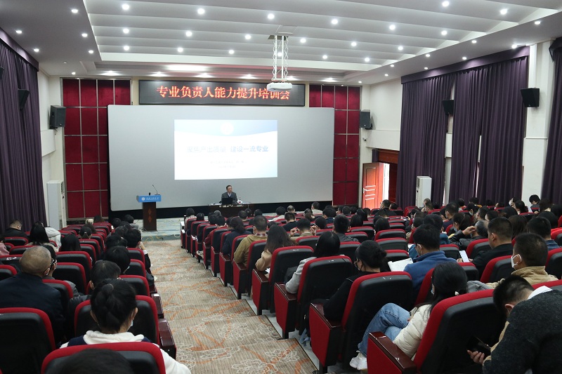 本网讯(文/教师发展中心 张静 图/大学生记者团 张元昊)11月3日下午,由教师发展中心组织的“2021年专业负责人能力提升班”如期开班。副校长王琼花、校长助理周龙福、杨桂及各二级教学单位负责人、副院长、专业负责人、课程负责人、教研室主任,教师发展中心、教学质量管理办公室、教务处全体成员共153人出席并参加了办公楼阶梯教室举行的开班仪式及首场培训。