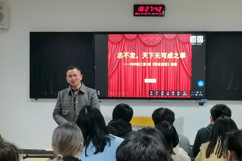 本网讯(文/建筑工程学院 霍超 图/大学生记者团 张元昊)为进一步加强大学生职业规划能力,11月18日下午,建筑工程学院在6332教室举行了“志不定,天下无可成之事”职业定位专题讲座。本次讲座由校长助理简玉刚主讲,建筑工程学院辅导员霍超以及20工造1班全体同学参加。