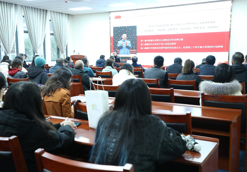 本次学习会邀请了重庆市中国特色社会主义理论体系研究中心秘书处副处长,重庆科技学院兼职硕士生导师张永恒宣讲。张永恒从深刻认识、准确把握习近平总书记“七一”重要讲话的重大意义,深入学习领会“七一”重要讲话提出的一系列新思想、新观点、新要求,深学笃用“七一”重要讲话精神,在新的征程上奋力开创更加美好的未来三个方面进行了深入的讲解 。用高屋建瓴的理论和贴近实际的案例让大家对习近平总书记“七一”重要讲话精神有了更深刻的了解和认识,与会人员听后深受教育与启发。本次学习是党委理论学习中心组深入学习习近平总书记“七一”重要讲话精神系列学习的第2次学习。