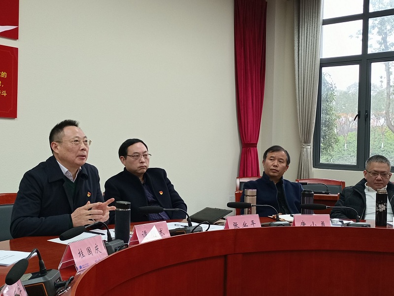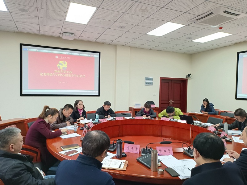 本网讯(文/图 党委宣传部)为进一步深化学习习近平总书记“七一”重要讲话精神,学习贯彻党的十九届六中全会精神,党委理论学习中心组11月25日在行政楼第三会议室召开了2021年第13次学习会进行深入学习,并联系思想和工作实际进行了交流讨论。党委书记兼督导专员谭明术主持学习。