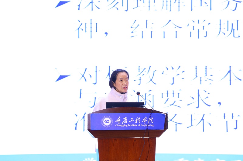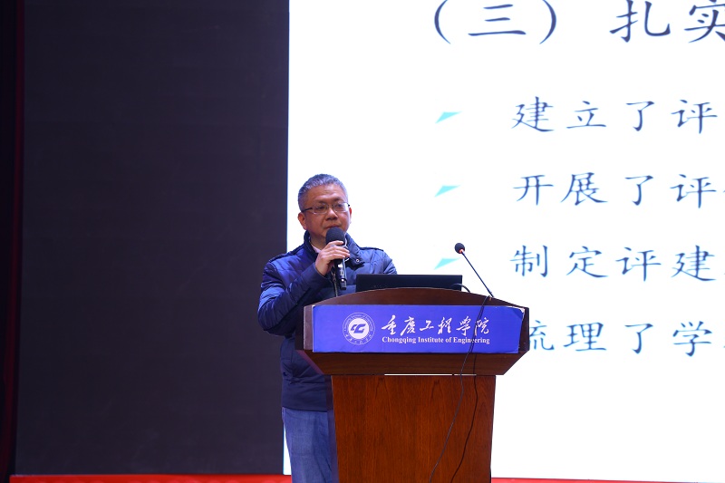 校长助理杨桂解读了《重庆工程学院全面提高教育教学质量与管理水平工作行动方案》。她倡议全体教职工要牢记使命,坚定信心,认真备课上课,教书育人,以评促建,以评促改,切实加强和改进教学方式方法,不断提高教学水平和质量,以饱满的工作状态迎接学校本科教学工作合格评估。