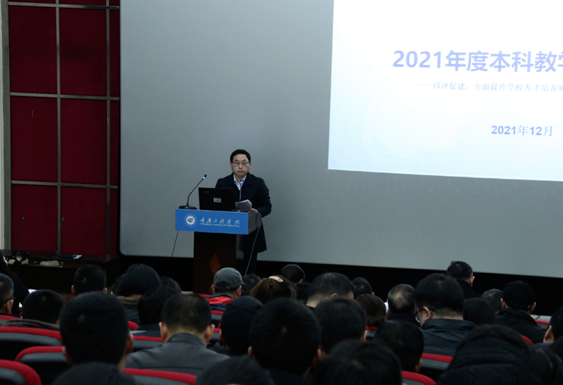 上午,校长助理杨桂作题为《坚持以评促建,全面提高人才培养质量》的主题报告。报告总结了本年度在教学制度建设、管理体系构建、人才培养方案修订、课程思政体系建设、课程建设、教材建设、实践教学与实验室建设、教学改革等本科教学工作中取得的成绩,深入分析了当前教学工作面临的形势和任务,指出存在的问题和不足。她从九个方面对2022年的教学重点工作进行了部署,一是要持续优化学科专业结构,抓好专业建设;二是要深化人才培养模式改革,持续优化人才培养方案;三是要深入推进校企合作,实现产教协同育人,四是要全面实施课程思政,继续推进课程建设,五是要加强实践教学管理,促进实践教学规范化运行;六是要深入开展教学改革,推进信息化智慧教学;七是要严格教学 管理规范,加强教学基本建设;八是要加强管理团队建设,夯实教学管理团队;九是要完善二级管理制度,健全质量监控体系。