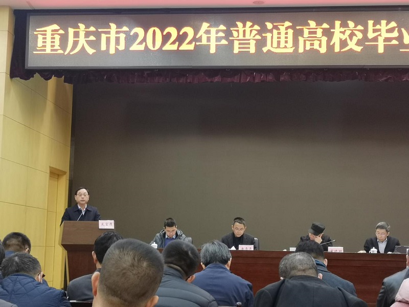 本网讯(文/图 招就处 吴优)为深入学习贯彻党的十九届六中全会精神,贯彻落实党中央、国务院和市委、市政府关于“稳就业、保就业”的决定部署,全面落实2022届全国普通高校毕业生就业创业工作网络视频会议精神,总结2021年普通高校毕业生就业创业工作,安排部署2022年工作,12月13日上午,重庆市教委召开2022年普通高校毕业生就业创业工作会议。