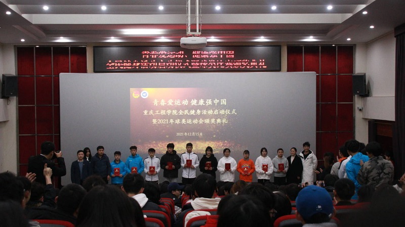 本网讯(文/图 校团委 金质纯)为深入学习贯彻习近平总书记“七一”重要讲话精神和关于加强青少年体育教育的一系列重要论述,积极响应共青团中央、国家体育总局和全国学联“青春爱运动 健康强中国”全民健身活动的号召,落实全民健身和健康中国国家战略,同时总结表彰2021年秋季球类运动会获奖团体及个人,12月15日下午,我校“青春爱运动 健康强中国”全民健身活动启动仪式暨2021年秋季球在行政报告厅成功举行。学校党委学工部部长黄燕,校团委书记黄涛,各二级学院团委书记等部门负责人以及各参赛代表队等180余名学生共同参与此次活动。