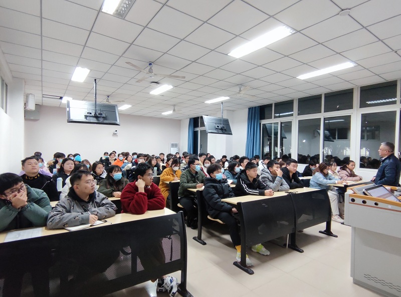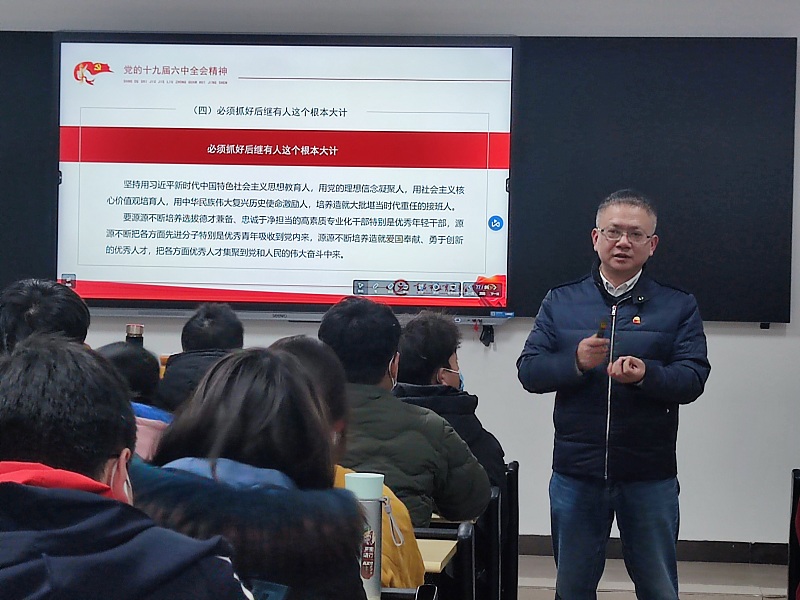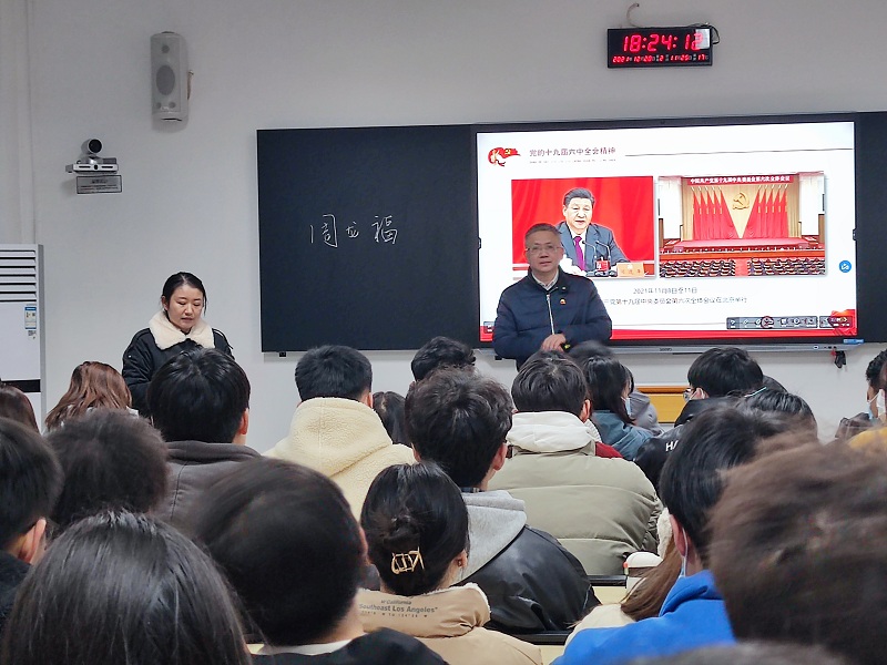 本网讯(文/图 电子信息学院 宋文轩)12月28日,电子信息学院在6110教室开展学习贯彻十九届六中全会精神宣讲会,校党委委员、校长助理周龙福同志主讲,电子信息学院学生第一党支部书记宋文轩同志主持,正式党员、预备党员、发展对象、入党积极分子共计88人参加。