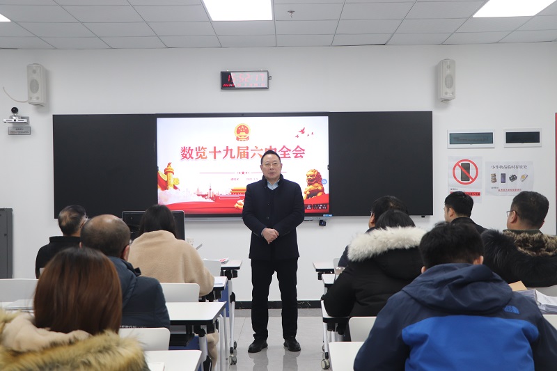 本网讯( 文/图 大数据学院 蔡丽)为认真学习贯彻党的十九届六中全会精神,推动会议精神在基层落地生根,按照学校有关文件精神,大数据与人工智能学院党支部于1月5日在七教206集中学习十九届六中全会精神,学校党委书记谭明术担任主讲人,学院全体教师参加。