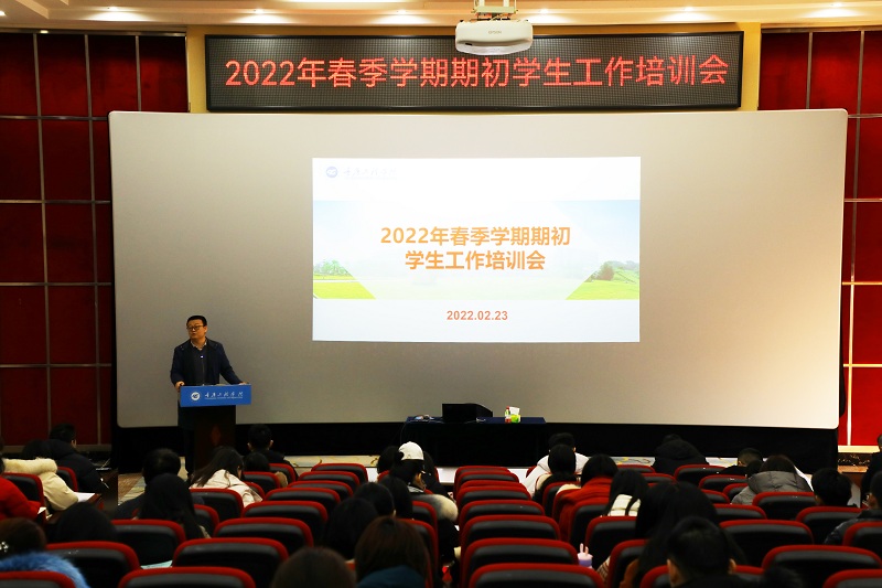 本网讯(文/学生处 何杰玲 图/党委宣传部)为进一步加强辅导员队伍建设,提高辅导员职业技能和工作水平,推动辅导员职业化、专业化发展, 2月23日,学生处组织开展了春季学期期初学生工作培训会,特别邀请了重庆师范大学党委学工部部长胡小强、重庆大学党委学生工作部副部长胡小华、西南大学党委宣传部副部长周翱作专题培训。南泉、双桥两校区各二级学院党总支书记、学生科长、辅导员、学生处全体成员共计90余人参训。