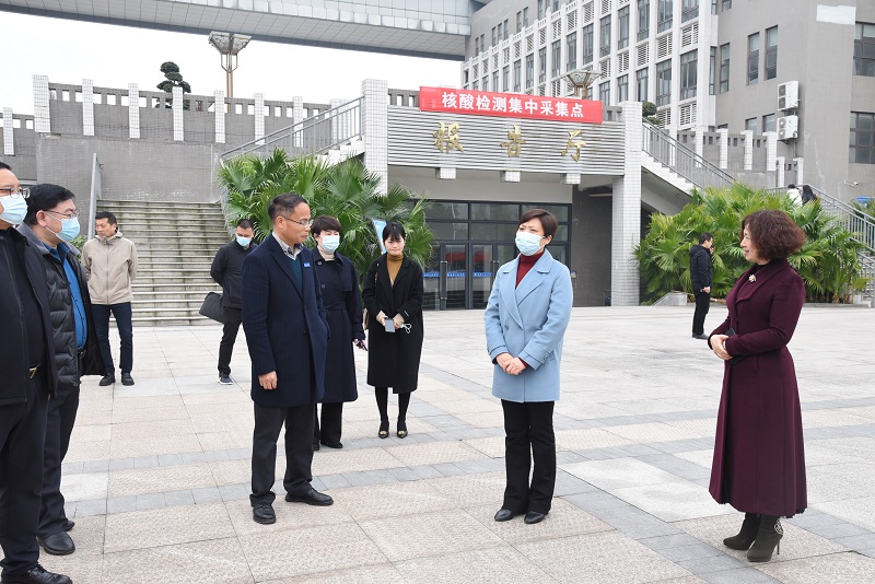 本网讯(文/图 双桥校区综合事务办 王瑜琳)2月28日上午,大足区副区长王大蓉与大足区教委、卫健委有关负责 人到我校双桥校区调研指导开学疫情防控工作。我校副校长、双桥校区管委会主任蒋国华陪同。
