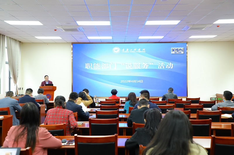 本网讯(文/ 人事处 李松柏 图/ 大学生记者团 官成成)4月14日下午,职能部门“说服务”活动在行政楼第四会议室开展,全体在家校领导,各职能部门负责人及部分职能员工参加。活动由党委副书记兼常务副校长张业平主持。