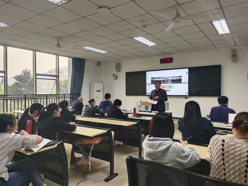 本网讯(文/图 电子信息学院 李金琼)4月19日下午,电子信息学院在六教216教室开展了青年教师教学技能比赛。院长何世彪、副院长景兴红、陈成瑞,系主任许癸驹、专业教师陈德伟、胡聪娟担任本次比赛评委,教务科、全体参赛老师以及部分专任老师参加此次活动。