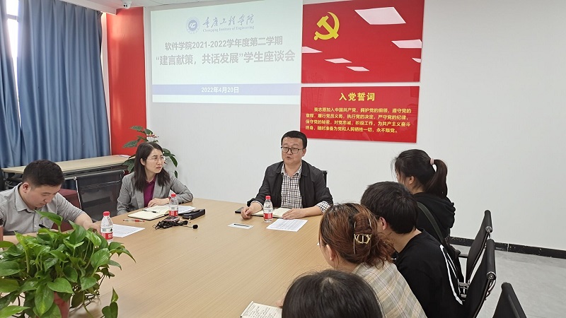 本网讯(文/图 软件学院 李阳)为不断提升学校教育、管理、服务水平,多角度深入听取学生的意见建议,更好地满足青年学生成长成才需求,提升学校管理水平,4月20日下午,软件学院召开“建言献策,共话发展”学生座谈会,副校长王建东、软件学院党总支书记刘子菱、学生科长李阳老师和软件学院50余名学生代表一起交流座谈。