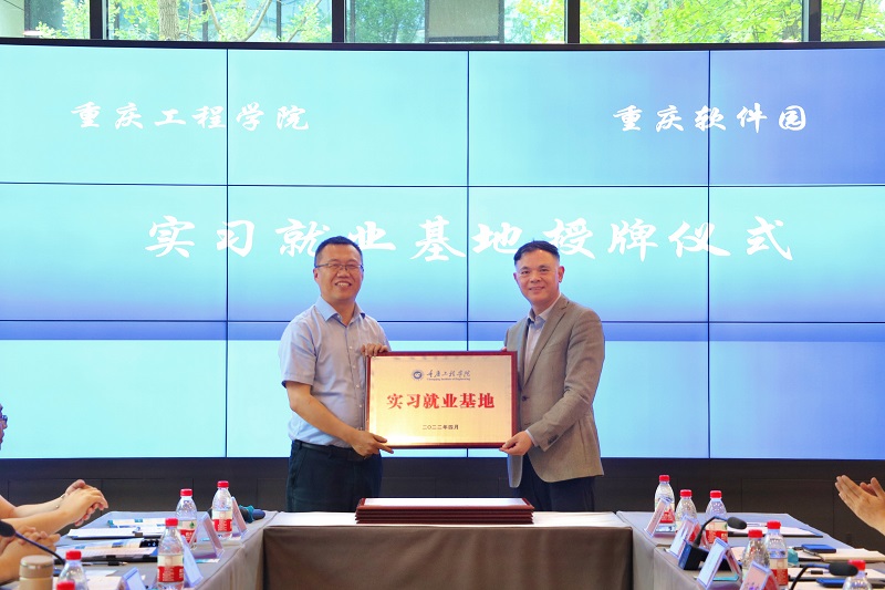 会上,重庆软件园总裁孙丕宏代表园区授予重庆工程学院“人才培养基地”牌,重庆工程学院校长桂国庆代表学校授予重庆软件园 “实习就业基地”牌,数字艺术学院院长杨开富、软件学院党总支书记刘子菱分别授予相关合作企业“实习就业基地”牌。