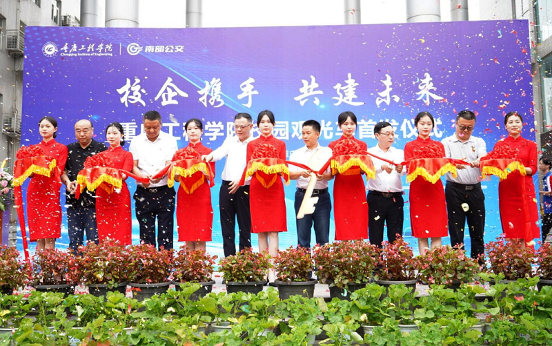 仪式上,桂国庆与陈正交换象征着开启合作成功大门的金钥匙。黄立在致辞中表示校园观光车项目的成功运行提升了校区交通服务多元化及便利性,输出公交新模式与运营经验,提升校园服务水平。今后双方将进一步扩大多业态的校企合作,积极探索产学研结合的新路子。最后,黄立宣布重庆工程学院校园观光车首列发车。