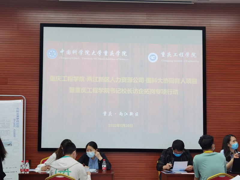 本网讯(文/图 招就处 叶秋清)为贯彻落实教育部、重庆市教委关于高校书记校长访企拓岗专项行动的工作要求,加强校企合作,拓展就业岗位,助力我校毕业生实现更加充分、更高质量就业,5月26日上午,党委书记、督导专员谭明术一行赴中国科学院大学重庆学院(简称国科大重庆学院)参加“重庆工程学院、两江新区人力资源公司、国科大协同育人项目人才供需对接会”。学校招生就业处、相关二级学院领导和老师及我校2022届毕业生参与了本次对接交流活动。