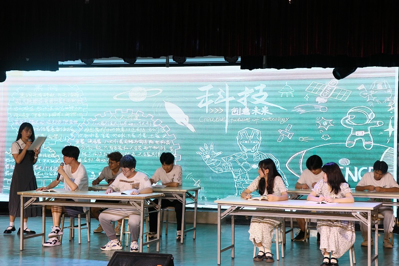 据了解,经过前期的班级自荐和辅导员考核,本次共有18个优秀班集体参与评比展示。评比展示共分为两个环节,即班级红蓝绿文化建设汇报和班级表演展示。各班表演形式多样,各显神通,自编歌曲、朗诵、走秀、舞蹈、电商直播等丰富多彩的表演形式,展现了各班级的个性与活力,凸显了班级特色。现场氛围浓烈,同学们欢呼喝彩,掌声雷动。