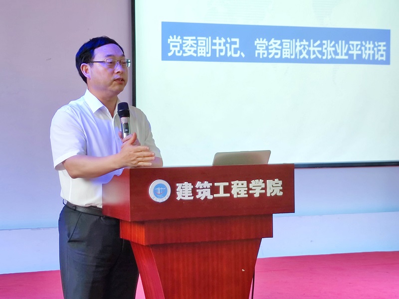 本网讯(文/图 建筑工程学院 吴俊峰) 6月17日,建筑工程学院在学院三楼多功能厅召开迎评促建整改工作部署专题会议,党委副书记、常务副校长张业平出席了此次会议,学院全体教职工参加。