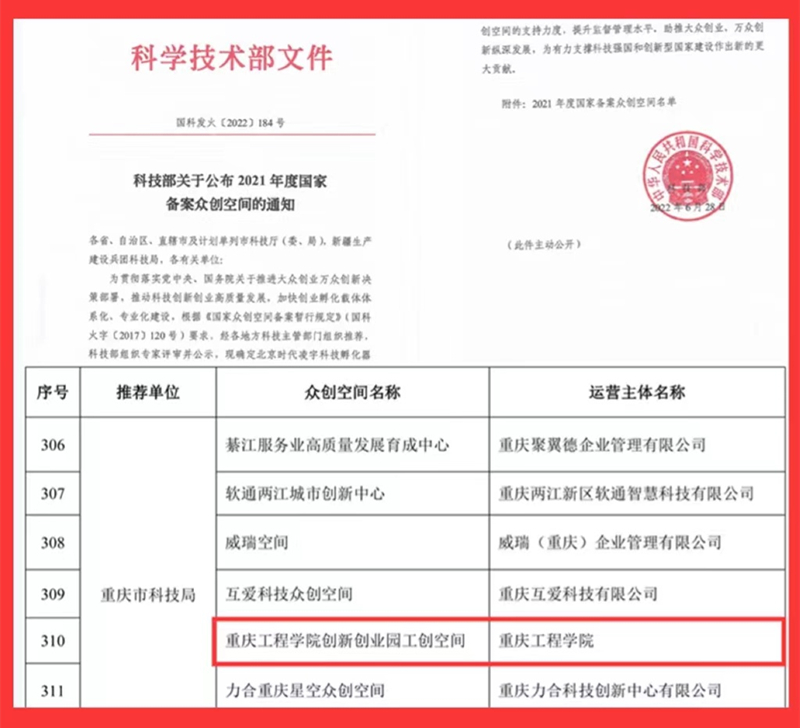 本网讯(文/图 创新创业学院 吴乐乐)近日,科技部印发了《关于公布2021年度国家备案众创空间的通知》(国科发火〔2022〕184号),我校创新创业园被认定为国家备案众创空间。