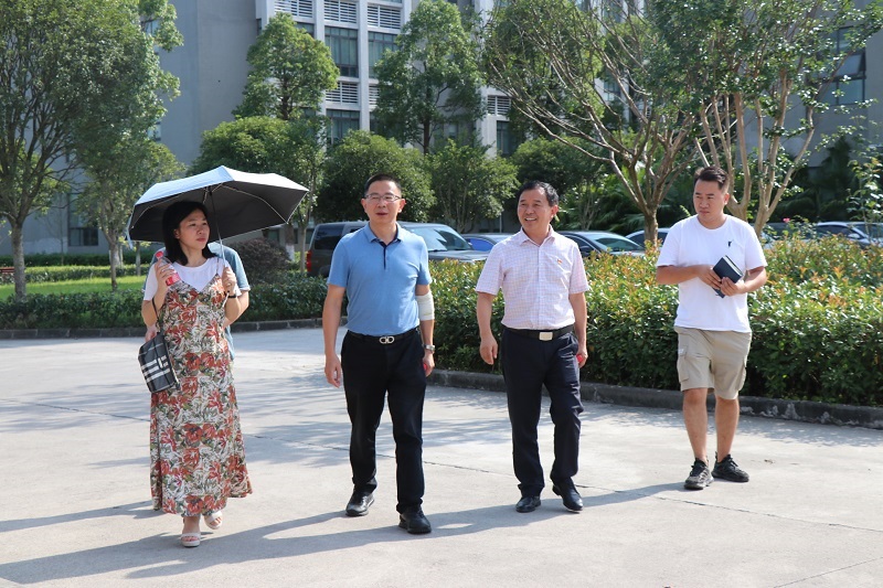 本网讯(文/图 双桥校区 吕颖莉)7月12日,重庆市大足区人大常委会副主任、区工商联主席肖朝华莅临我校双桥校区指导工作,我校党委副书记、双桥校区党工委书记唐小勇,财务总监王小林陪同调研。