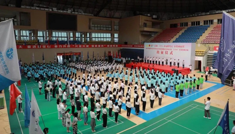 本网讯(文/图 校团委 金质纯)7月13日上午,由市委宣传部、市文明办、市教委、市水利局、市乡村振兴局、团市委、市学联、中共奉节县委、奉节县人民政府共同举办的“喜迎二十大、永远跟党走、奋进新征程”2022年重庆市大中专学生志愿者暑期文化科技卫生“三下乡”社会实践活动出征仪式在奉节县体育馆顺利举行,市委宣传部二级巡视员左图强,市乡村振兴局党组成员、副局长王仕杰,奉节县委书记张果,团市委副书记黄永宜出席活动,我校作为市级“三下乡”重点团队受邀参加活动。