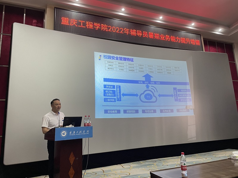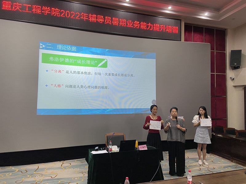 三位老师有着多年丰富的学生思想政治教育工作经历。西南大学教育学部杨挺教授围绕“辅导员工作中的法律常识”专题,结合工作案例对学生管理工作中辅导员应了解的法律法规,学生的法律身份、人身权、受教育权及其保护以及校园安全的法律义务等方面,进行了深度剖析;西南大学叶海燕教授通过大数据对学生心理问题分布进行分析,并以弗洛伊德“成长理论”、埃里克森“发展理论”等提出处理学生心理健康问题的四种策略,作了题为“‘心理学+育人’工作探究”的主题报告;我校武装部部长熊力从校园安全管理体系出发,结合丰富的案例,从校园安全防范的视角对辅导员进行了学生危机干预与应急处置策略的培训。