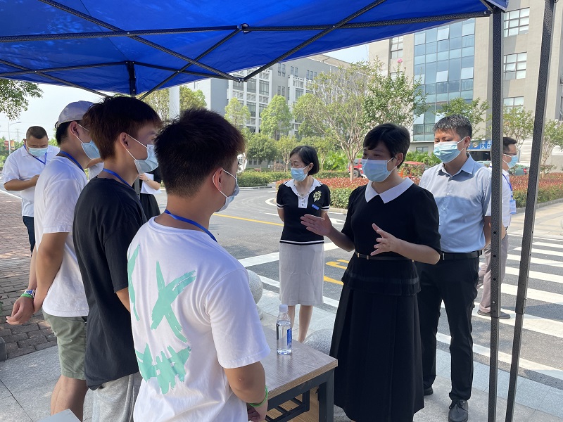 王大蓉副区长一行详细了解了我校新生报到工作流程,先后前往学校门岗、校内迎新接待站点、校内核酸检测点和健康观测点等重点场所了解学校疫情防控措施,听取了开学新生报到防疫工作和学校“创文”工作的相关汇报。