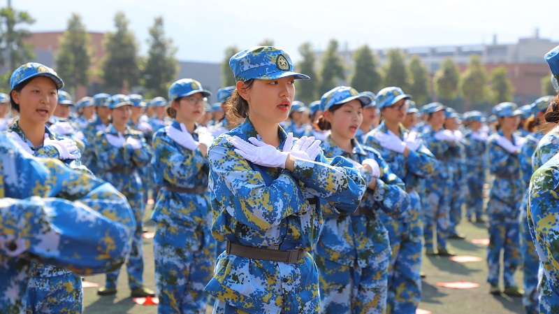 检阅仪式在庄严的升国旗、奏国歌仪式中拉开帷幕。伴随着激昂的《解放军进行曲》,军训成果汇报演出正式开始。各方阵训练标兵身着迷彩服,在方队队长和方队政委的带领下,迈着铿锵的步伐、喊着嘹亮的口号,依次通过检阅台。他们动作整齐划一、气势豪迈、无一不展现出军人气质。各方队先后进行了分列式、花式方阵、军体拳、手语操等精彩表演,赢得了全场掌声与喝彩。2022级共4000余名学生经过为期十天艰苦的军事训练,在检阅式上体现出“尽责、守信、求精、创新”的校训精神,为自己的军训呈上了一份满意的答卷。
