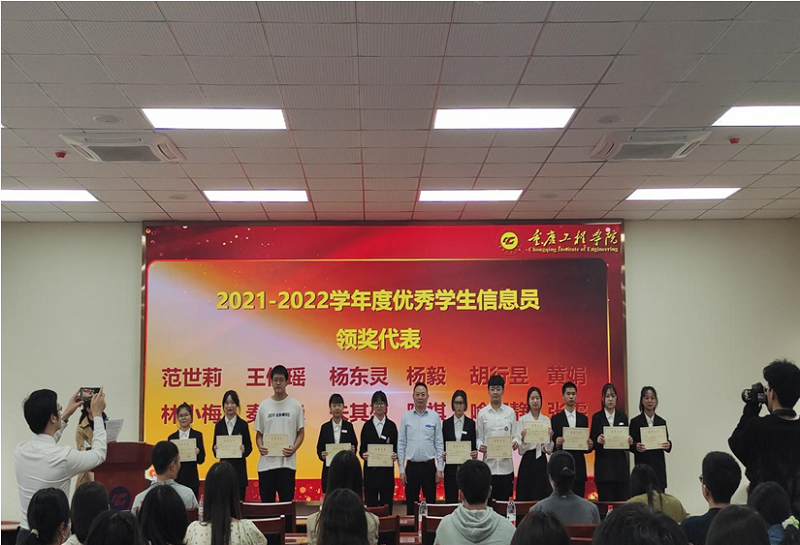 本网讯(文/图 质管办 姚长红)为总结经验、表彰先进,加强教学质量监控,充分发挥学生在教学管理活动中的积极作用,促进教学质量的稳步提高。10月12日,学校在重庆工程学院南泉校区行政楼201会议室,举行了“2021-2022学年教学信息员工作总结暨表彰大会”。党委书记、督导专员谭明术,教学质量管理办公室副主任赵钰,负责教学信息员管理工作的老师,全体优秀学生教学信息员和学生信息员参会代表参加了此次会议。会议由教学质量管理办公室姚长红老师主持。