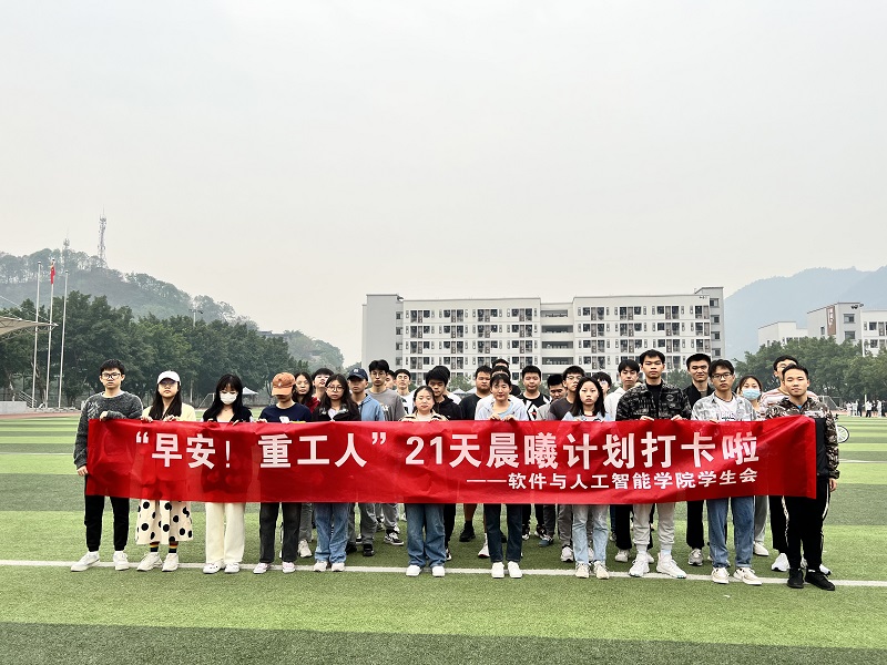 本网讯(文/图 软件与人工智能学院 王惠俊)古有祖逖刘琨闻鸡起舞立志报效祖国,今有重工学子晨起扬少年意气。为切实引导学生实践“三走”(走下网络、走出宿舍、走向操场)、“三早”(早起、早读、早锻炼),助力青年大学生养成良好的学习和生活习惯,营造出向善向好的校园氛围。自10月21日起,我院组织开展为期21天的“早安!重工人”晨曦计划正式拉开序幕。