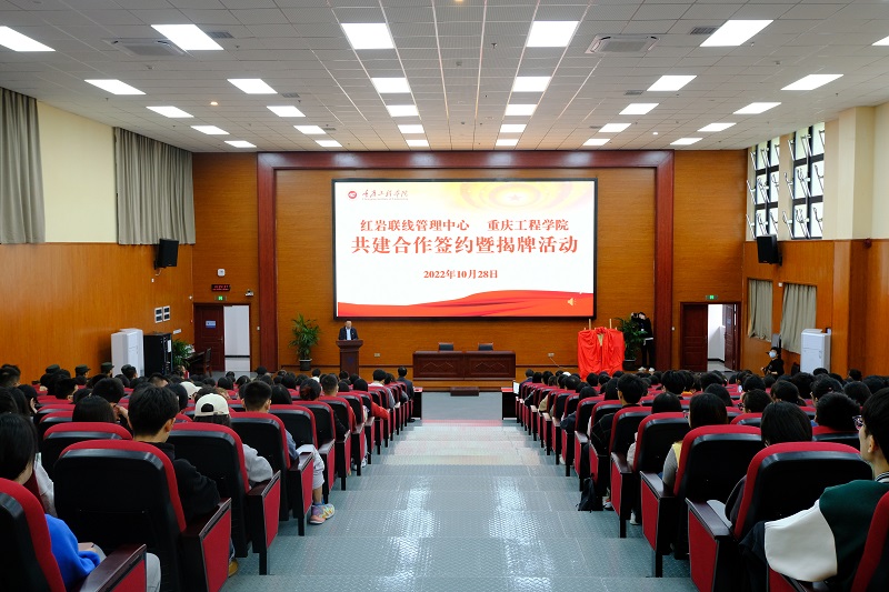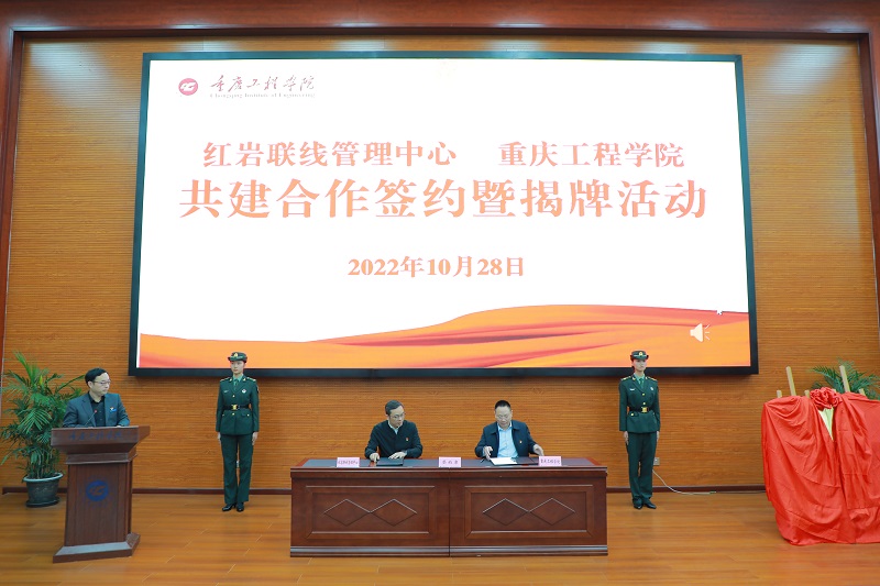签约揭牌活动在《红梅赞》歌声中开始,重庆工程学院党委书记谭明术致辞,黄振伟与谭明术代表双方签署了共建协议,朱军和谭明术共同为“重庆工程学院思想政治教育基地(“大思政课”实践教学基地)”和“红岩精神重庆工程学院研究中心”揭牌。签约揭牌后,红岩联线管理中心党委书记、红岩干部学院院长朱军为学校师生党员讲授了《传承红岩精神 赓续红色血脉》专题党课。