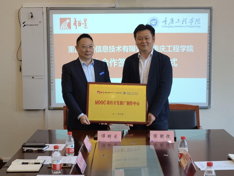 本网讯(文/图 校企合作办公室 宁俊龙)10月31日下午,学校在第六会议室举行重庆超星信息科技有限公司-重庆工程学院校企合作暨授牌仪式,党委书记、政府督导专员谭明术,教务处处长杨倩,信息中心主任皮小军,数字艺术学院院长杨开富,副院长庄涛文以及职能部门相关人员,超星集团副总经理、西南区总经理陈朝侃、超星集团重庆分公司副总经理赵汝林等出席仪式。仪式由教务处处长杨倩主持。