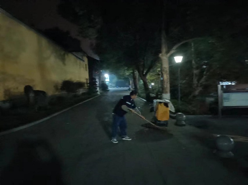 我们是不是会有这样的感受,明明没有经常看见保洁人员,但是宿舍过道、教学楼的楼道、校园的街道总是干干净净的。那是因为当我们还在呼呼大睡时,保洁工作人员就早已到岗。一般情况下,早上5点,叔叔阿姨们就已经开始清扫街道的落叶和垃圾,负责教学楼的阿姨也开始扫地和拖地,线下课时因为同学们有早课,为了不打扰大家的学习,总是早早的就清洁好,等着同学们上课;现在虽然是线上课,但有些在准备考试的同学也会很早去教室复习,阿姨们便还是坚持每天五点到岗。
