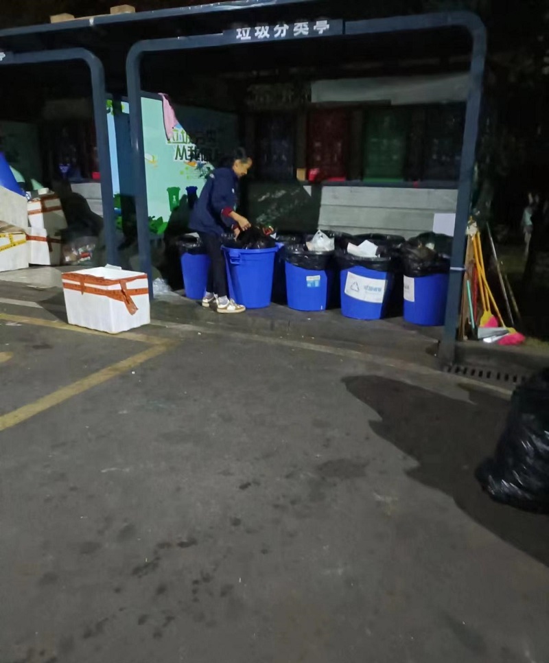 处理宿舍垃圾的阿姨工作量是最大的,特别是现在同学们都选择打饭带回寝室吃,产生的宿舍垃圾也更多了,那些干干净净的清理好了的垃圾桶,是她们一点一点收拾、分拣、打包、拖运出来的,她们每天要工作到晚上9点多才能回寝室休息,有时甚至更晚。除了打扫清洁和处理垃圾,她们还要按时按点到指定区域进行消毒,教学楼、食堂、宿舍,学校的各个角落都会进行消毒,希望能够给同学们提供更加干净安全的校园环境,保洁阿姨们一直都在努力着。