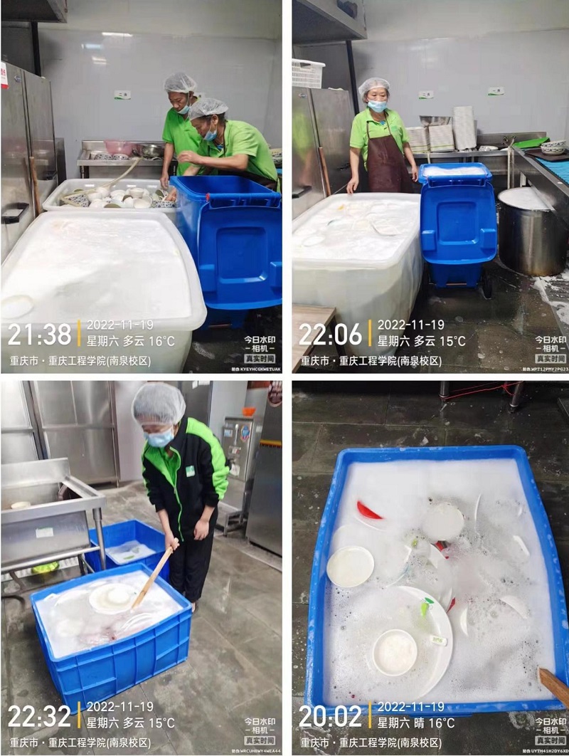 防疫期间,食堂工作人员们每天晚上,等到同学们都不再就餐后,他们要清理好自己的档口后才能离开,通常21:00关闭档口,打扫卫生做清洁欸,对餐具和抹布进行消毒,一切做完后,也就是晚上22:00后才能回去休息。