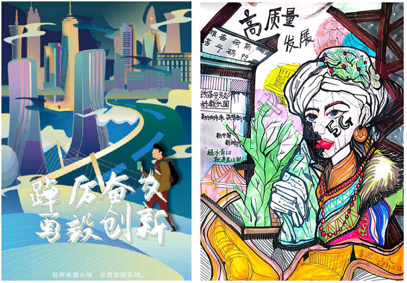 本网讯(文/图 数字艺术学院 李毅)为宣传贯彻党的二十大精神,助力学院师生学习研讨二十大报告,切实把我院师生的思想认识和行动统一到党的二十大精神上来,数字艺术学院在10-11月举办了“图解二十大,共展新画卷”绘画作品征集活动。