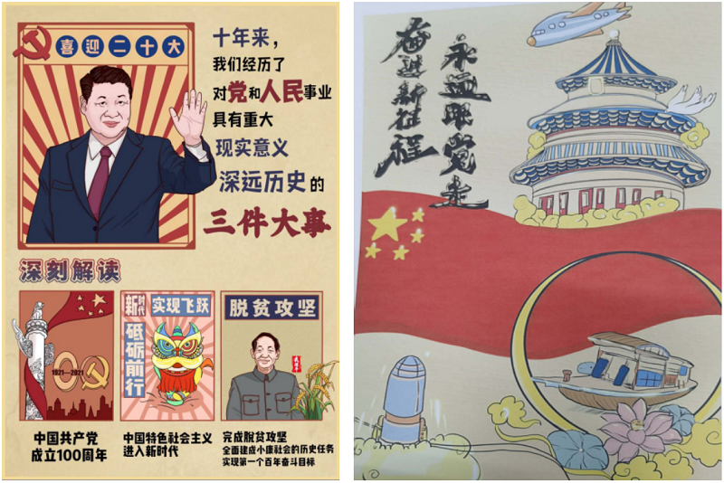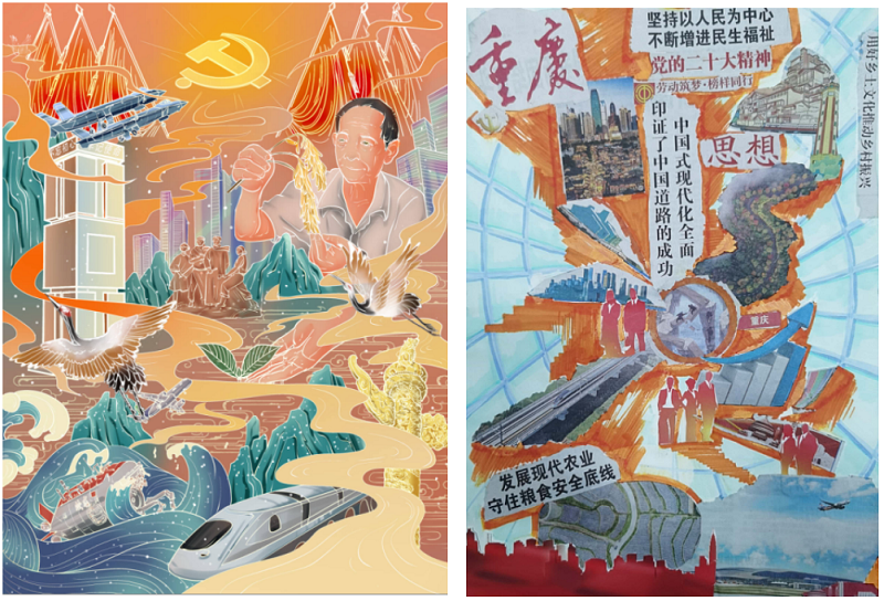 本次活动学院在校学生党员、预备党员、发展对象、入党积极分子积极参与,围绕二十大报告提出的一系列重要论述展开创作,一共十五个主题,共征集40余幅作品,用手绘、板绘等艺术表现形式解读二十大报告,充分展现了我院学子专业素养,实现了学院党建与艺术教育、创作的深度融合。以下是部分创作: