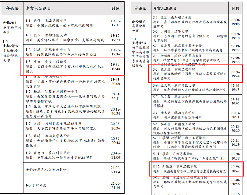 图1. 美育教师代表分论坛演讲顺序