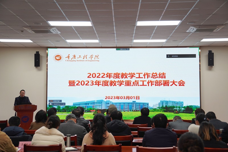 接下来,教务处处长杨倩作题为《对标对表找差距,凝心聚力抓落实》的主题报告。报告总结了2022年度人才培养顶层设计、教学建设工作、教学管理工作等本科教学工作中取得的成绩,深入分析了当前教学工作面临的形势和任务,指出存在的问题和不足。同时,从十一个方面对2023年的教学重点工作进行了部署,一是要持续优化人才培养方案;二是进一步加强案例库、项目库建设与使用;三是完善校内实习基地建设与管理;四是推进“工学交替”教学模式探索;五是继续推进专业建设与课程建设;六是加强教学质量监控;七是进一步加强教学规范的深入全面实施;八是推动基层教学组织、优秀教学团队建设;九是进一步提高教学管理人员的管理能力与水平;十是启动教学成果奖培育项目;十一是持续开展迎评工作。