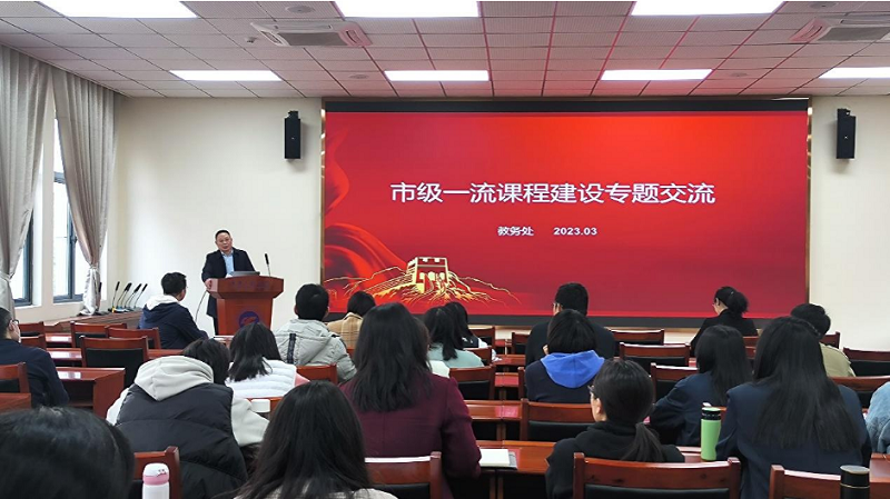本网讯(文/图 教务处 郎俊霞)3月10日下午,学校在行政楼第四会议室召开2023年市级一流课程建设专题交流活动。党委书记、督导专员谭明术,教务处处长杨倩出席指导,60名校级“金课”建设项目负责人全程参与。活动由教务处副处长汪俊良主持。