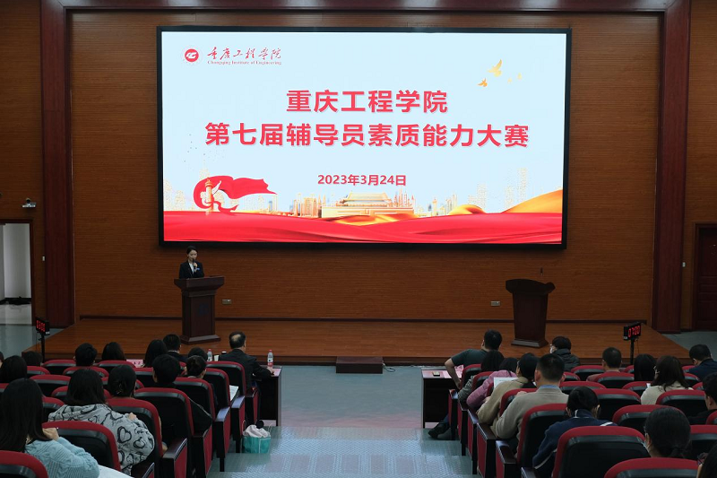 本网讯(文/学生处 李鹏 图/大学生记者团 肖郁遥)为进一步强化我校辅导员队伍专业化、职业化建设,全方位提升我校辅导员的理论水平、专业素养和工作能力,学校于3月24日在7807举办“重庆工程学院第七届辅导员素质能力大赛”,特邀原重庆工商大学党委书记、重庆市历届高校辅导员素质能力大赛本科院校组专家组组长周希贤教授,市教委宣教处干部姜瑞民,学校副校长王建东,学工部部长黄燕,大学生素质教育中心副主任邹春霞担任现场评委,各二级学院书记、学生科科长以及全体辅导员到现场观摩学习,我校共11位辅导员参与本次大赛。