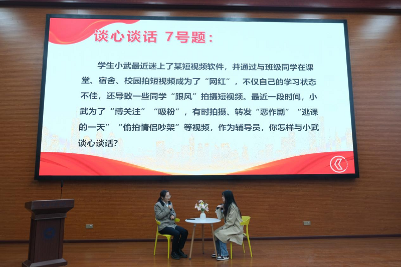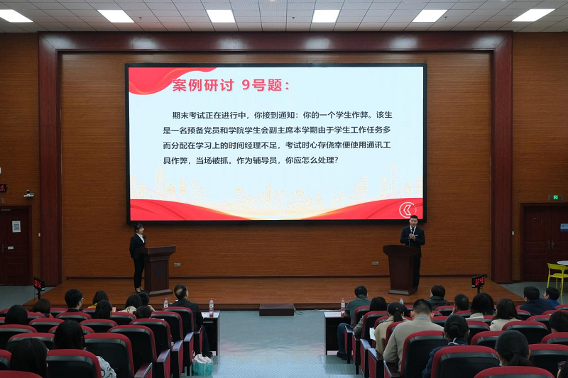 本次辅导员素质能力大赛分为基础知识测试和实践技能比赛两个阶段。基础知识测试采用闭卷笔试作答方式进行,重点考察辅导员的理论素养和业务知识,实践技能比赛包括案例研讨和谈心谈话两项内容,重点考察辅导员分析问题、研判问题、解决问题的能力。现场辅导员老师们丰富的知识储备,过硬的个人素养和精彩的表现赢得现场观众的阵阵掌声,经过激烈角逐,最终软件与人工智能学院辅导员蔡丽斩获本次辅导员素质能力大赛一等奖。