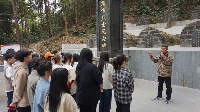 活动中,管理学院师生代表首先来到位于东温泉镇黄金林村的天赐革命烈士陵园,由村党总支副书记冯强在革命烈士纪念碑前为同学们讲解中国人民解放军第二野战部队十位烈士的英勇事迹,同学们认真聆听、深有感触,自豪感和使命感在心中涌动,认识到现在幸福生活来之不易。