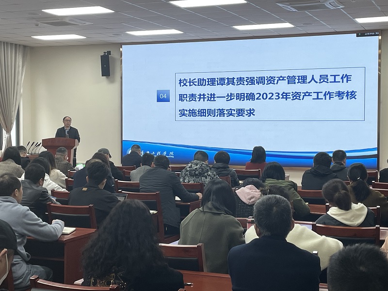 会上,基建后勤处副处长刘达斌通报开学以来资产检查情况并提示了2023年资产管理重点工作,教务处处长杨倩解读实验室及教学科研仪器设备使用、管理要求,财务总监王小林解读本科合格评估资产现场督查注意事项。