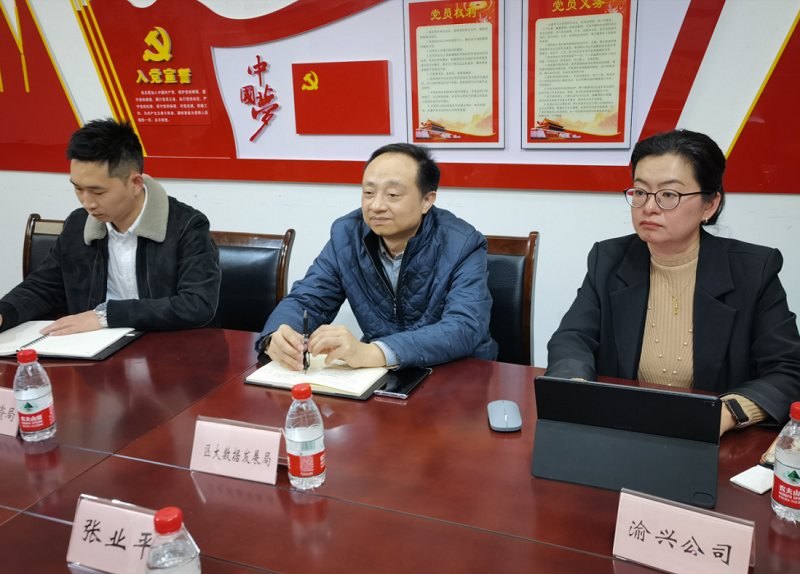 本网讯(文/图 教务处校企合作办公室 宁俊龙)3月28日,党委副书记、常务副校长张业平,教务处副处长许欢欢一行前往巴南区大数据发展局参加巴南区软件产业校政企合作交流会。巴南区大数据发展局局长刘敏、渝兴公司总经理杨向荣以及区招商投资局等相关领导参会。