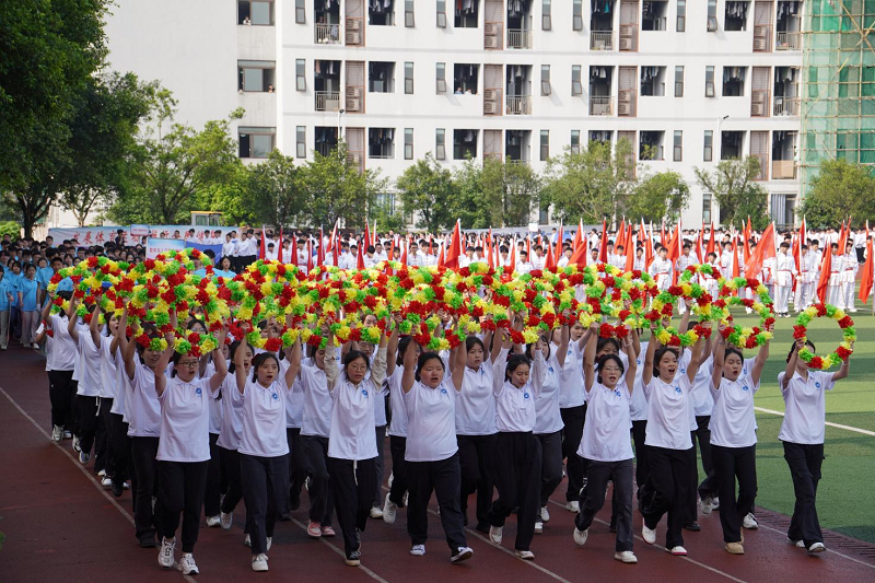 国旗护卫队手举五星红旗脚步铿锵,全体肃立,升国旗高唱国歌,与会学子的热情愈发高涨。随后,运动会代表和裁判员代表分别进行了宣誓。