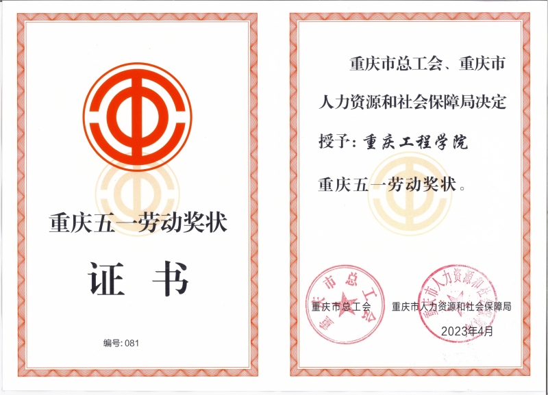 本网讯(文/图 校工会 邓俊梅)近日,重庆市总工会、重庆市人力资源与社会保障局下发了《关于表彰2023年重庆五一劳动奖和重庆市工人先锋号的决定》(渝工发〔2023〕1号),我校荣获 “重庆五一劳动奖状”荣誉称号,是本次表彰唯一获得此荣誉的高校。