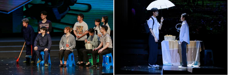 剧本敲定,火速排练,“周熙妍老师和安琪老师给了我们很多的帮助,周熙妍老师负责指导我们的创作以及排练,我们熬夜在报告厅排练的时候,她也一直陪在我们身边指导和支持。”剧团负责人之一,来自数字艺术学院网络与新媒体专业的张镱同学回忆道,“安琪老师负责对接了我们的比赛项目,即使因为身体原因不能在学校,她也通过视频的方式指导着我们。”短短两周,学校一路开启绿灯,老师学生排练日夜兼程,《硕果》在第42届川渝“校园之春”文化艺术体育活动“奋斗青春”话剧团课创作大赛决赛中脱颖而出。