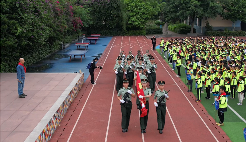 早上9点30分,我校国旗护卫队为南温泉小学的同学们升国旗,队员们以昂扬的姿态走过主席台,在激昂的《义勇军进行曲》中,升旗手振臂一挥,鲜艳的五星红旗徐徐展开,沐浴在温柔的晨光中,迎着初升的太阳,徐徐上升,在场教师行注目礼,学生行少先队礼,一双双眼睛目光坚定有光,满怀崇敬。